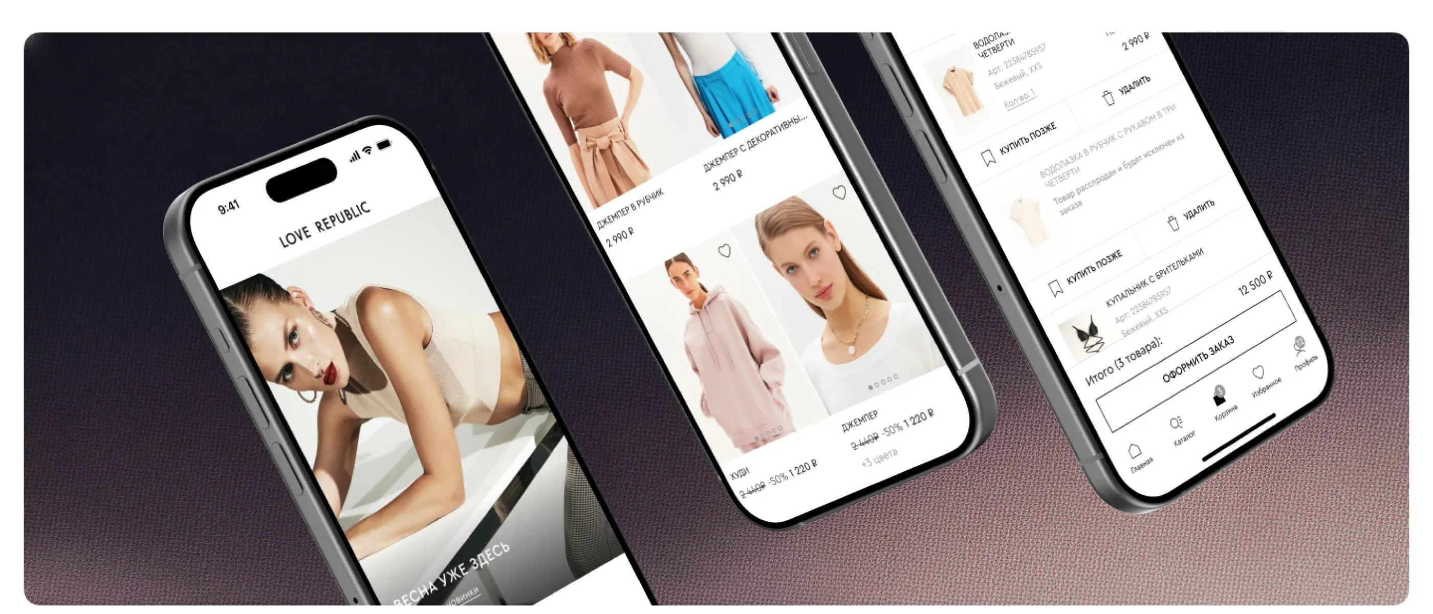 Команда LOVE REPUBLIC обратилась к нам в 2022 году — приложение теряло клиентов, продажи падали. Дизайн устарел, страницы долго грузились и регулярно сбоили — все это мешало покупкам и раздражало пользователей.