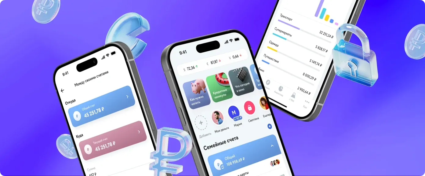 Через полгода запустили приложение со всеми ключевыми функциями: общий счёт, лимиты и задания для детей, семейная аналитика и быстрые переводы. Потом добавили семейный кэшбэк с прогресс-баром, курсы валют на главной и мгновенные переводы через СБП и me2me.