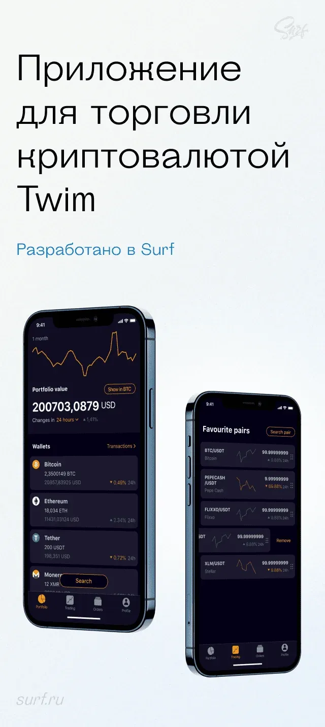 У нас в Surf большой опыт работы с криптовалютными проектами, один из примеров — приложение Twim. Оно задумывалось как удобное и понятное и для опытных трейдеров, и для новичков. Последние чаще всего пользуются только базовыми опциями и торгуют со своих смартфонов. Опытные трейдеры используют планшеты, так как им нужна полноценная торговая платформа с полным инструментарием. Поэтому приложение должно было одинаково корректно работать на смартфонах и планшетах. Кроме того, для всех пользователей была критически важна скорость работы приложения и обновления данных.